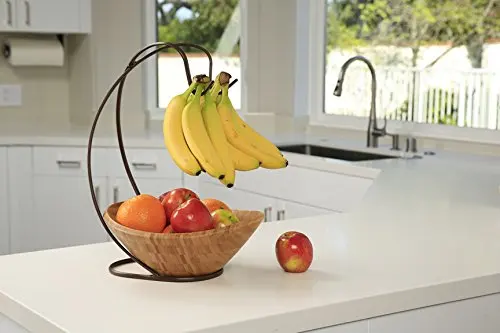 Dinette décor fruit bowl with banana holder, fruit basket with detachable banana hanger black, chrome or bronze color options.,best use the hooks for more than bananas: When hanging the grapes, just push the grape stems into the slot.the fruit tray is made of metal and is easy to install. I'd like to tell you about our new banana tree fruit bowl to see if it sounds like a useful product for you too. Crafted from bamboo, it features an understated. Simplehouseware fruit basket bowl with banana tree hanger, chrome finish.
